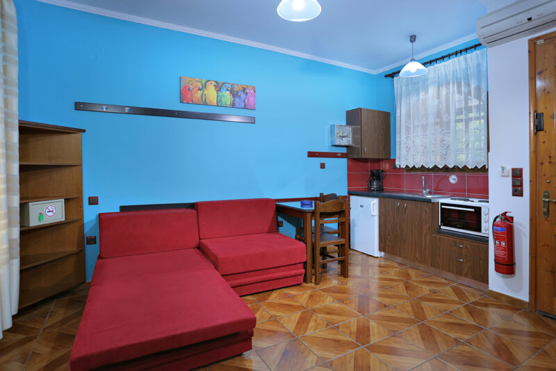 Όλα τα στούντιο-διαμερίσματα είναι διαμπερή ,φωτεινά με θέα την παραλία και τα μαγευτικά νησάκια της Πάργας.